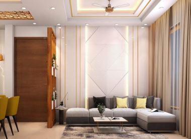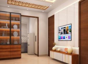 Drawing room and lobby is a one single space with a small wooden partition. The reason behind the partition is to segregate both the spaces, without disturbing the spacious look and appeal of the area