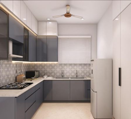 This modular kitchen in white grey theme is what people require these days and it is in trend. Keeping practicality in mind the material used in the kitchen are durable, easy to clean and best in their class. This modular kitchen will not be premade but will be handcrafted for you.